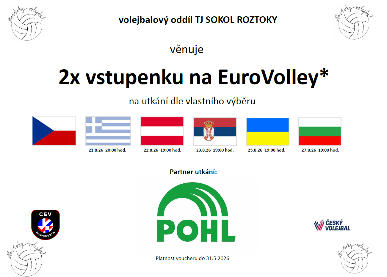 Lístky na EuroVolley za Vaši přízeň
